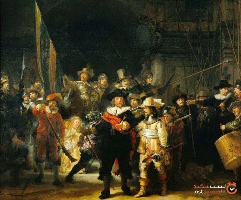 باز هم نوبت نقاشی های معروف هنرمندان هلندی رسید. رامبراند فان راین یکی از پرجزئیاتترین و معروف ترین نقاشی های جهان را در قرن هفدهم خلق کرد. این نقاشی بسیار بحثبرانگیز است و این ویژگی، به موضوعش ربط ندارد؛ بلکه به نحوه ترسیم افراد مرتبط است. اگرچه انسانهای این نقاشی در طبقات اجتماعی مختلفی قرار دارند، به جزئیات پرتره همگی به یک اندازه پرداخته شده است و به همین دلیل این نقاشی، تحولی در نظام پرتره به همراه داشت. عنوان سخت ترین نقاشی دنیا را میتوان به بسیاری از تابلوها داد و دراینبین اثر گشت شبانه هم میتواند یکی از آنها باشد.